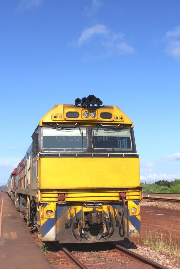 Train de longue distance pour le transport public dans l'Outback australien, Australie. Voyager en train de longue distance dans l'Outback australien. Ce train attend à la gare de Darwin, Territoire du Nord, Australie. Ce train est l'un des plus longs au monde.