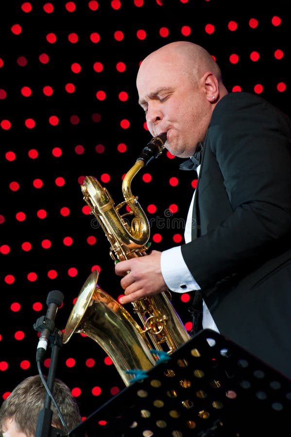 Igor Butman et son exécution de bande. MOSCOU - 5 JUIN : Bande d'Igor Butman exécutant au jazz en plein air d'Usadba de festival de l'International VIII le 5 juin 2011 dans le manoir d'Archangelskoye à Moscou